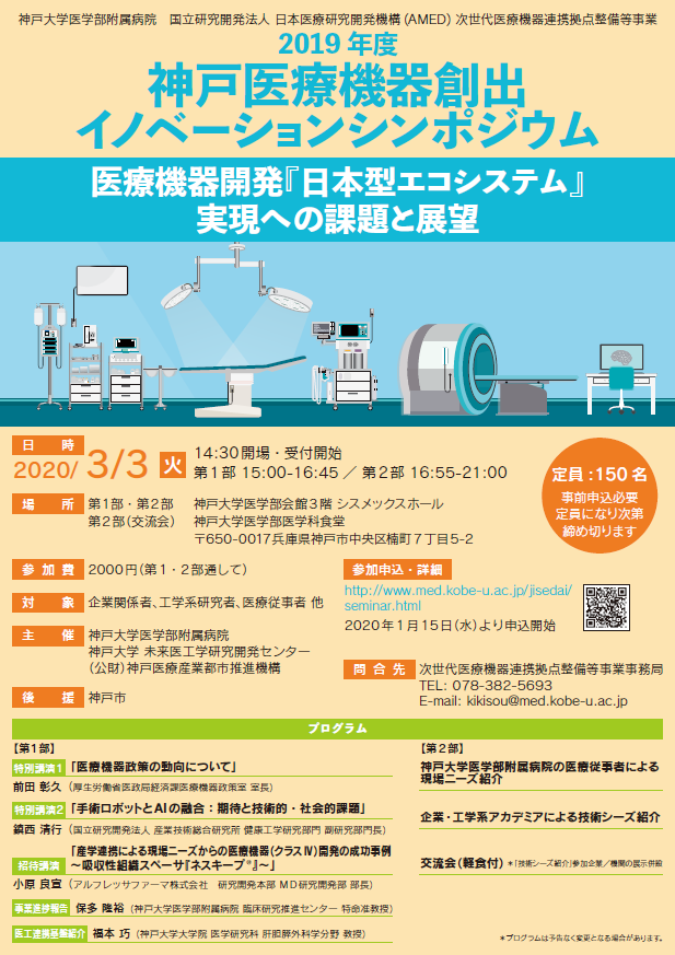 企業・研究者向け 医療関係者向け第2回 神戸大学連携イベント「医療機器開発のためのワークショップ」