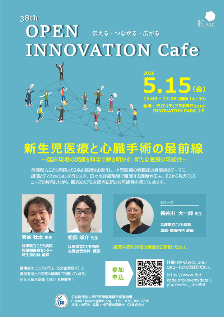 今回のカフェイベントでは、兵庫県立こども病院より2名の医師をお迎えし、小児医療の実臨床の最前線をテーマに、講演とディスカッションを行います。