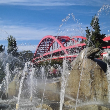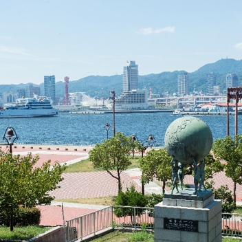 神戸大橋のたもとにある展望スポット。ポートターミナルに入出港する客船や、ポートタワーやハーバーランドなどの神戸らしい景色が楽しめます。近くに「イルカの噴水」や白い「みなと異人館」もあります。