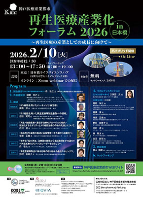 The Foundation for Biomedical Research and Innovation at Kobe (FBRI), which promotes regenerative medicine and its development as an industry, will host the “Regenerative Medicine Industrialization Forum 2026 in Nihonbashi” in cooperation with Kobe City. The event will take place on Tuesday, February 10, 2026, in Nihonbashi, Tokyo, with the aim of sharing challenges among companies and research institutions and strengthening collaboration.