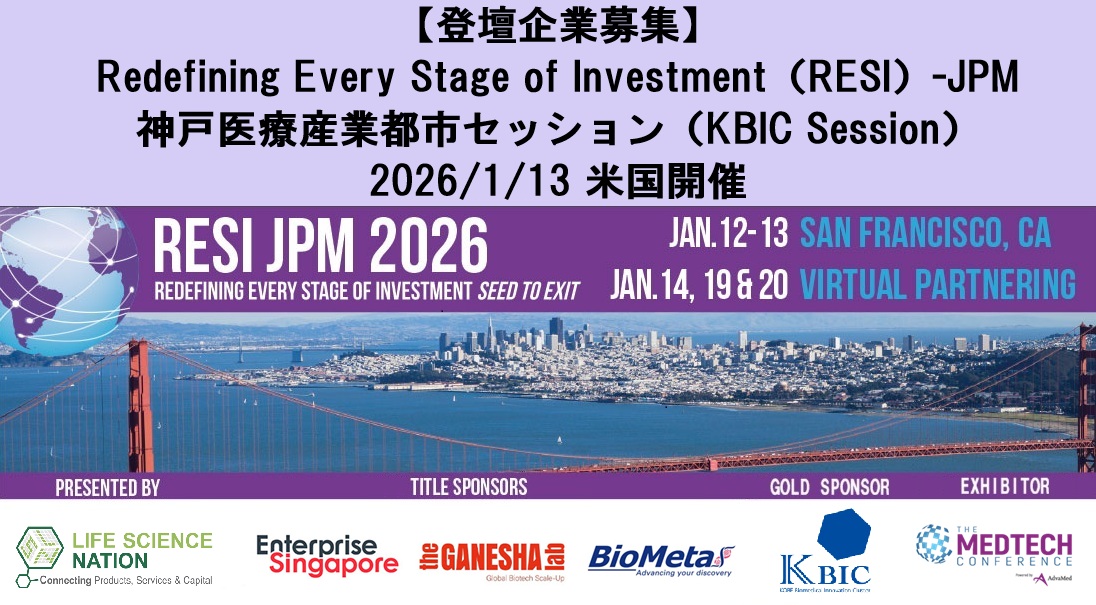 昨年好評をいただきました「神戸グローバル創薬開発ワークショップ」を本年も開催いたします。本ワークショップは、神戸市、推進機構、バイエル薬品の3者で締結した、「神戸医療産業都市におけるベンチャー企業の育成・支援等に関する連携協定」に基づく具体的な取り組みとして、バイエル薬品株式会社のご協力の下、実施するものです。