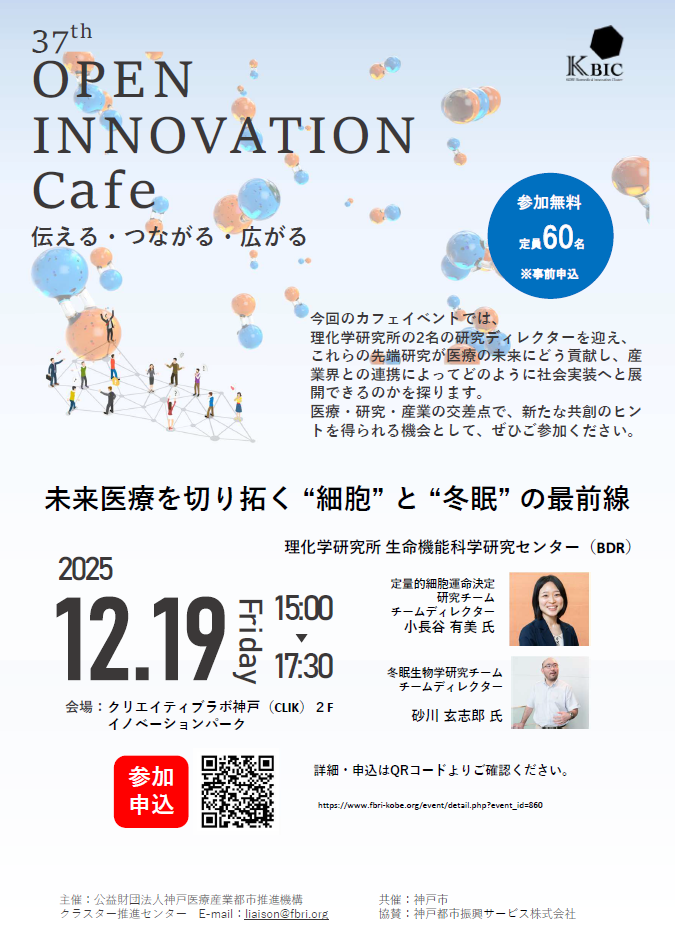 神戸医療産業都市の進出有無にかかわらず、どなたでもご参加いただけるネットワーキングイベントOPEN INNOVATION cafe を開催いたします。