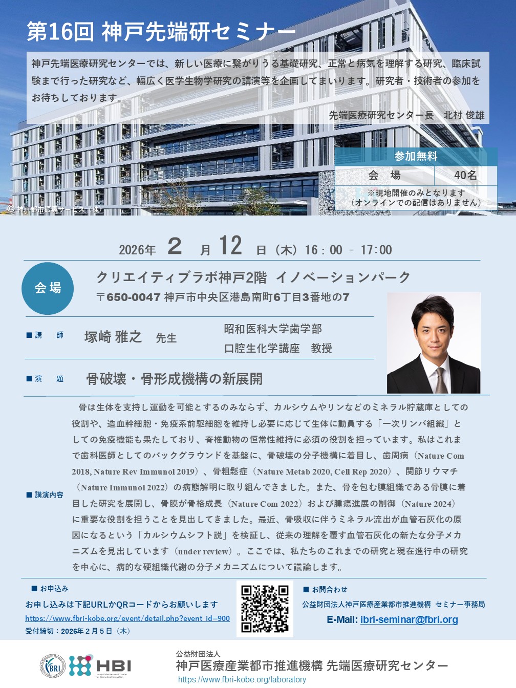 企業・研究者向け 医療関係者向け第16回 神戸先端研セミナー