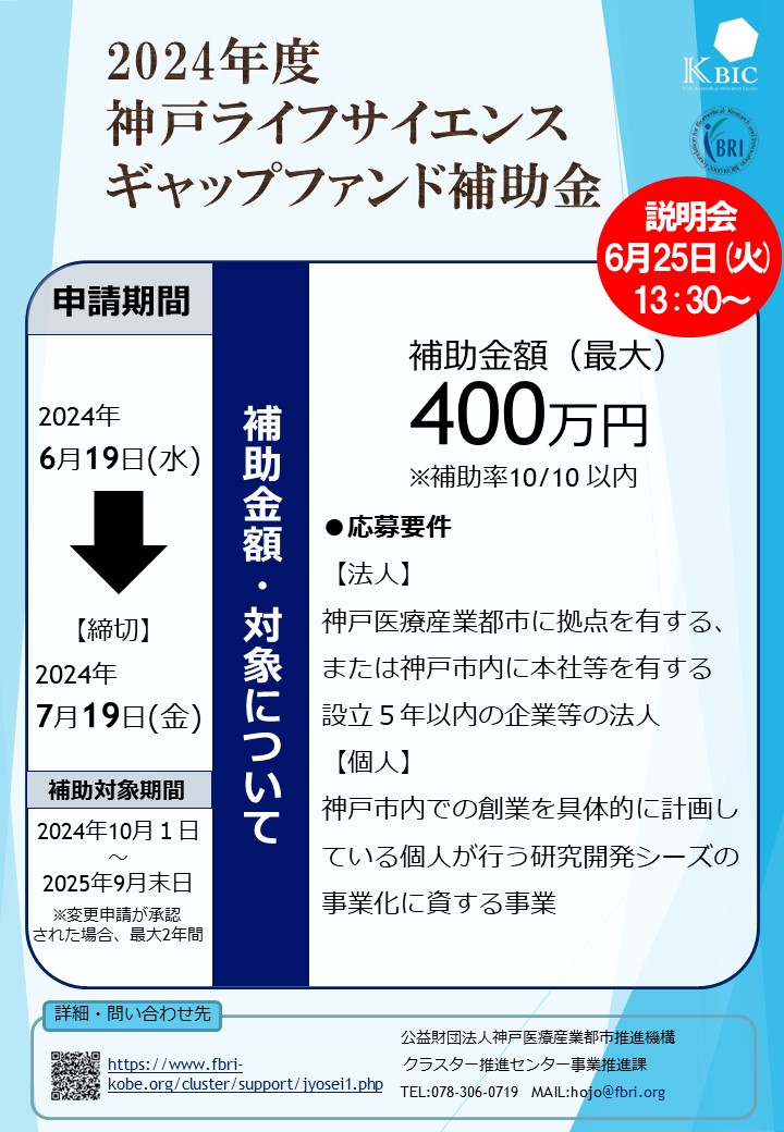 公益財団法人神戸医療産業都市推進機構【申請者募集】「2024年度神戸ライフサイエンスギャップファンド補助金」公募を開始しました